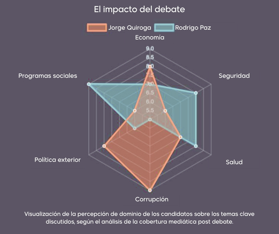 Destaca que la economía dominó la conversación pública, con el tipo de cambio, el abastecimiento de combustibles y la estabilidad como temas centrales. El informe advierte, además, sobre el riesgo de deslegitimación del proceso electoral por la alta circulación de noticias falsas y mensajes que apelan al miedo o la desconfianza en el Tribunal Supremo Electoral. También se recomienda fortalecer la comunicación institucional y promover compromisos democráticos que eviten la polarización postelectoral.